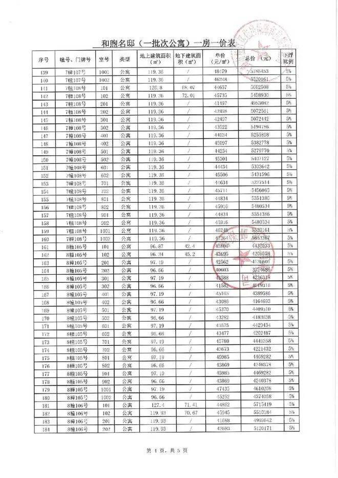 一房一价表如下: