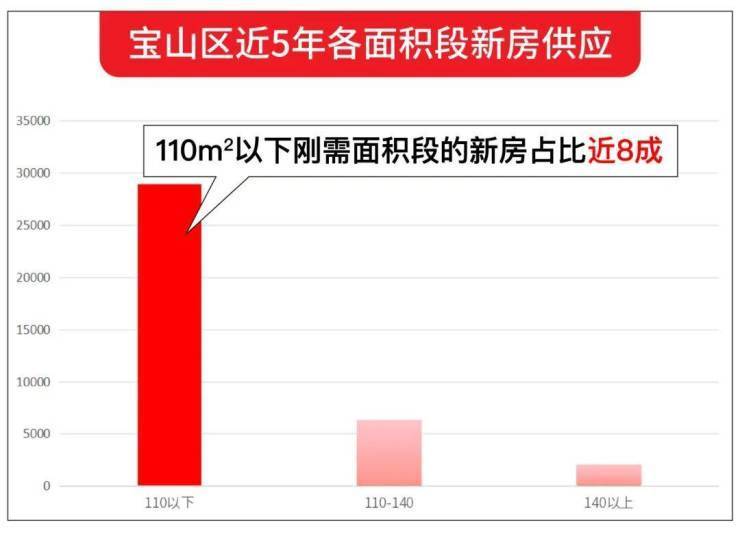 宝山在过去的5年中,建面约110㎡以下的刚需户型,供应占比近8成!对于改善客户而言,即使想在宝山实现置换,也是有心无力。