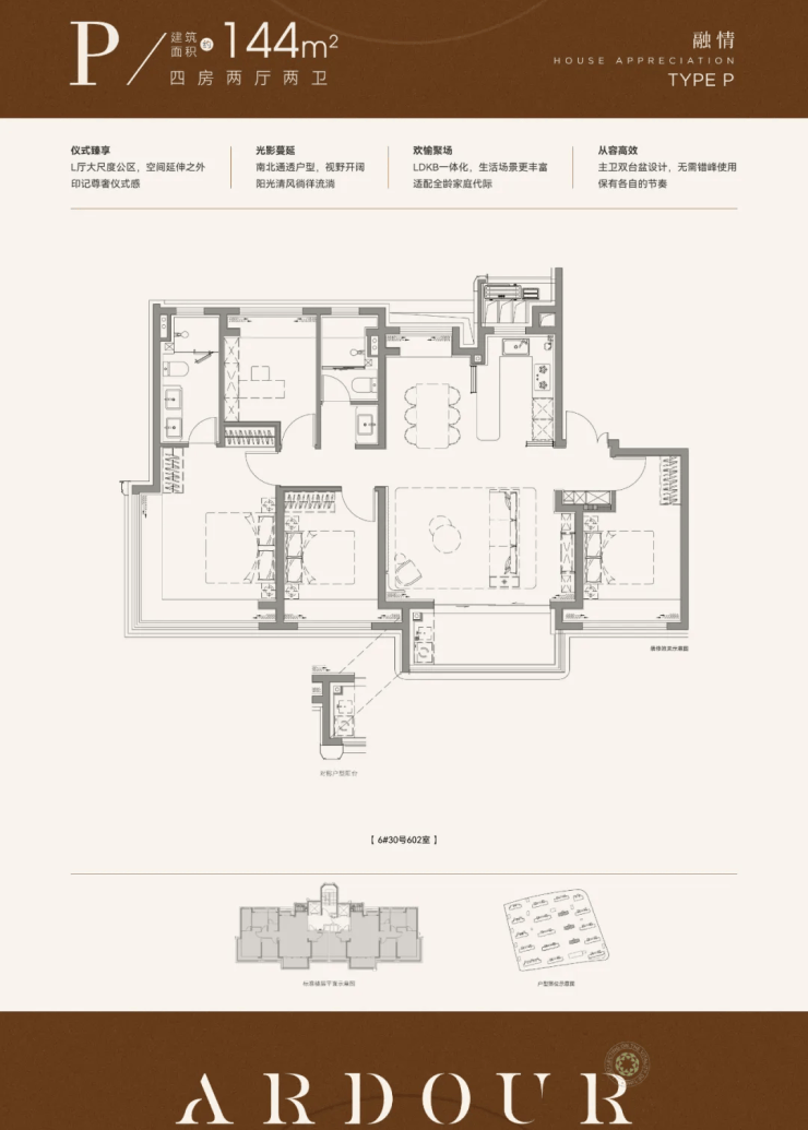 再来看下建面约144㎡4房,部分装标是有所升级的。