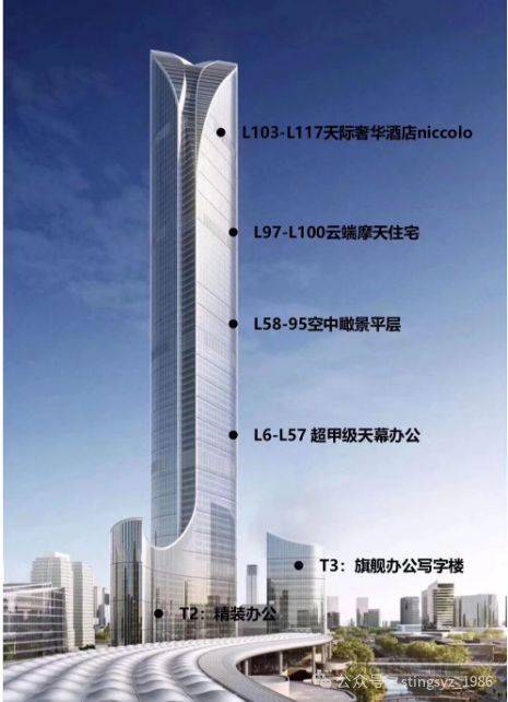 江苏省第一高楼450米,总共128层,甲级写字楼、摩天住宅、niccolo奢华酒店