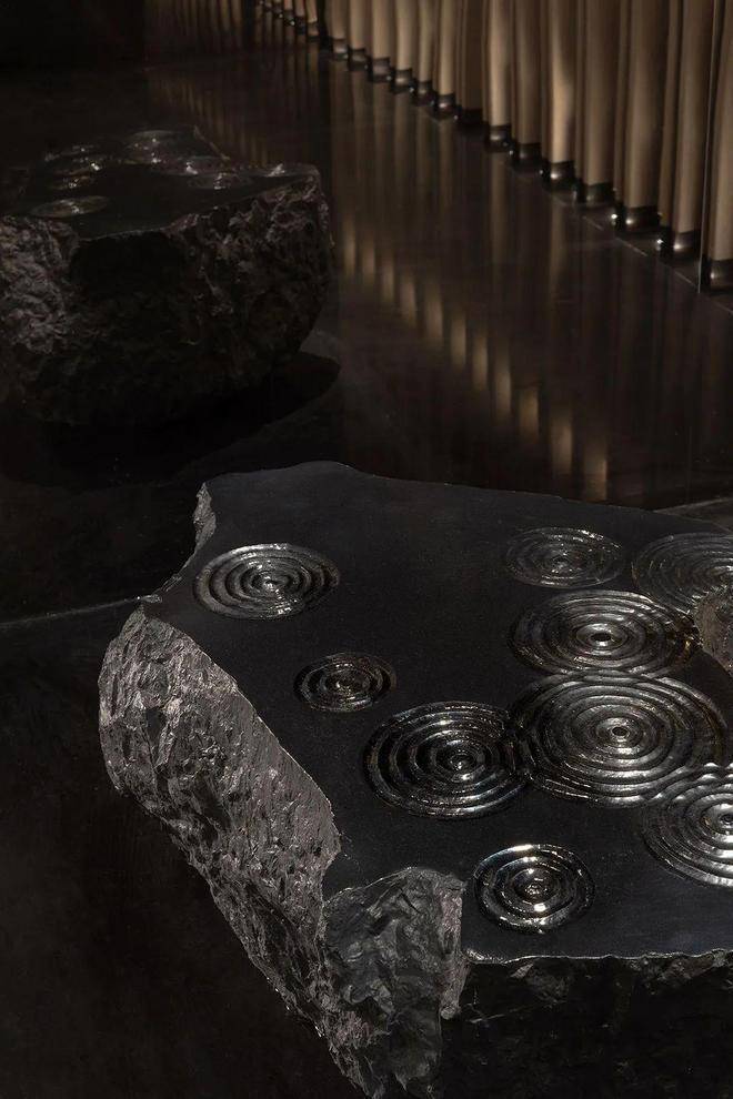 坚硬的花岗岩上呈现出荡漾的水波与涟漪,强烈的对比下,水的至阴至柔与花岗岩的至阳至刚通过作品融为一体,这种刚柔相济本身亦是道家学说与禅宗文之共性:天地万物本质的形象阐释。