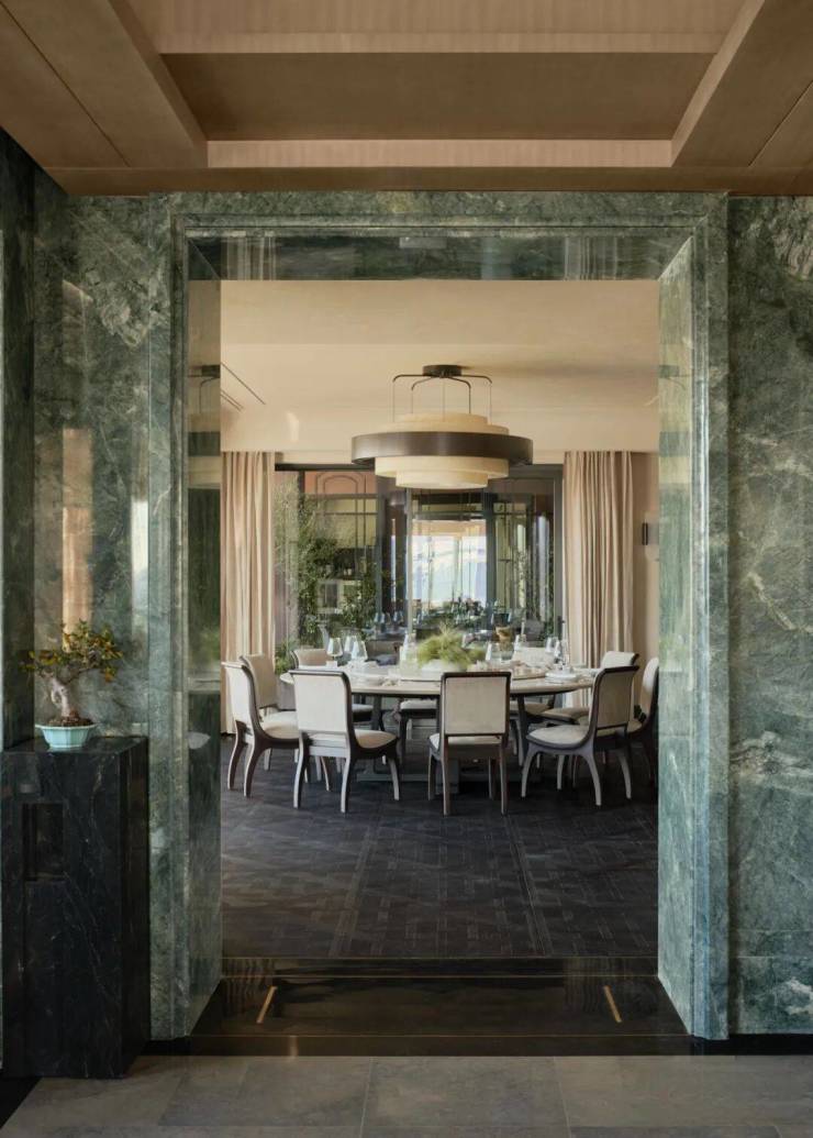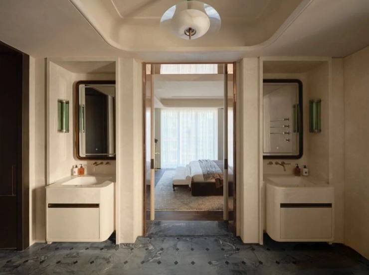 从选材来看,各种奢侈品级石材随处可见,比如与北京钓鱼台国宾馆同款的意大利进口鱼肚白石材,造价高达约2万/㎡,被誉为“世界上最贵的石材之一”!