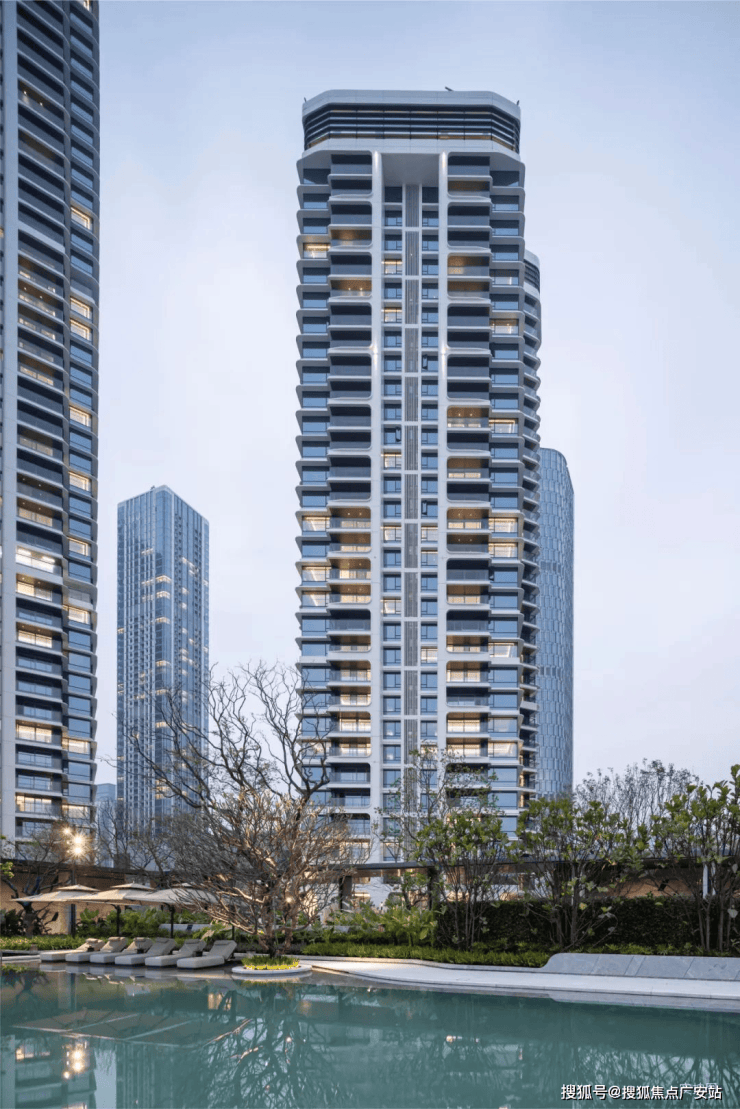 立面从湾区塔尖生活范本深圳【招商玺】汲取灵感,通过游艇曲线美学、仿游艇甲板设计,一线亲水布局,创造出全景舱观湖视野,以革新性设计理念重构流体建筑美学,打破了传统住宅建筑的平铺直叙,营造出海浪般流动的质感和韵律,