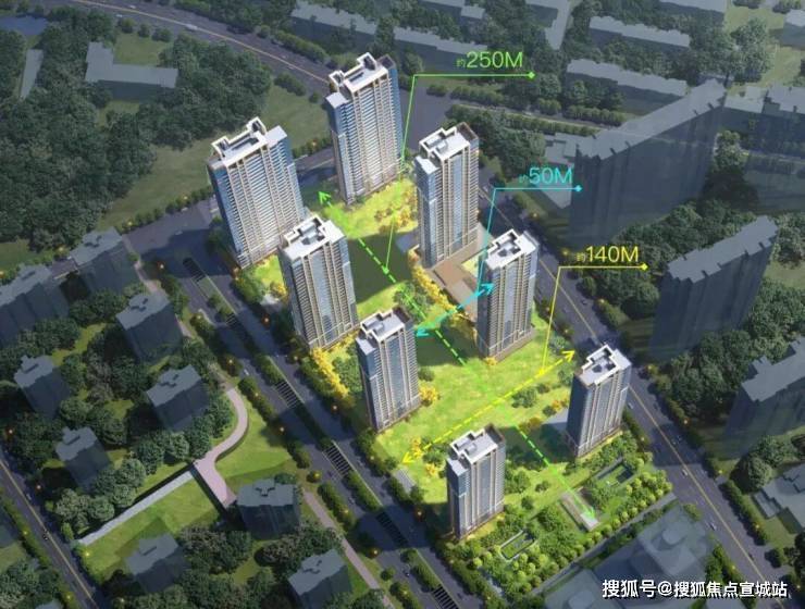 面对这样一个方正的长条形地块,多数项目大概率会按照常规思路,在社区中间打造一个“楼王”独享最优楼间距与核心景观.