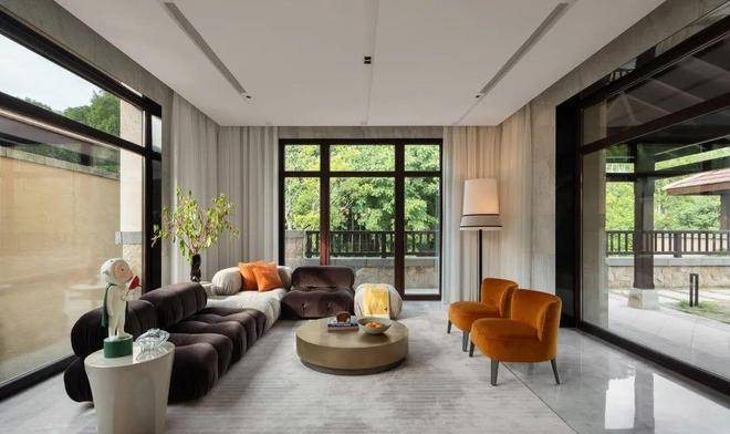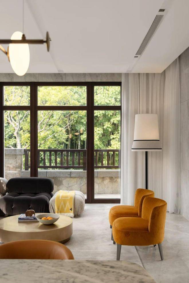 低靠背沙发的选择,可以最大限度地引景入室;无论窝在沙发,还是坐在休闲椅上,都可以看到庭院里最好看的景色。