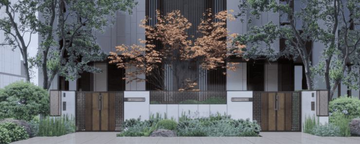 联排皆是 独门独户,入户设置在建筑主体北侧,门扇精美蚀刻工艺,尽显雅奢品质。