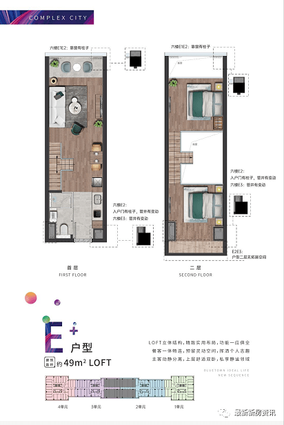 【楼层说明】地下1-2楼和地上1-2楼商业,3楼设备阳台,4-5楼平层公寓,6-12楼4.19米LOFT。