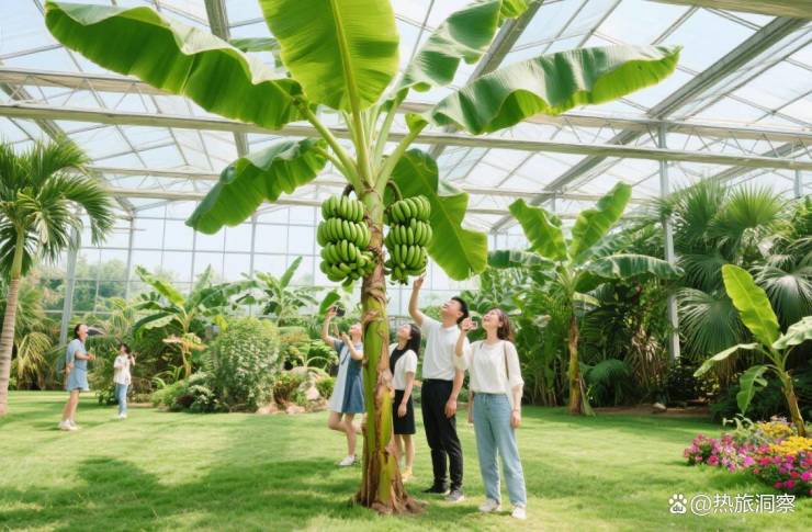 带娃必去!有热带植物园(看香蕉挂枝)、多肉园(10 元 / 盆)、季节采摘园(草莓、小番茄)(插图 6:现代农业园热带植物园实拍)。孩子摘果、大人拍 “田园大片”。