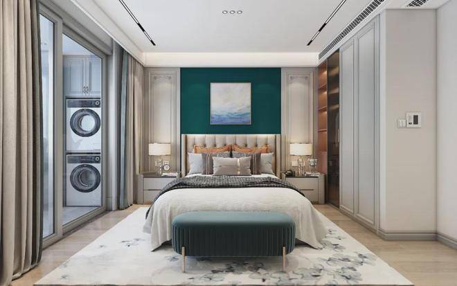 月光温柔地洒在窗口,步入套房式主卧,