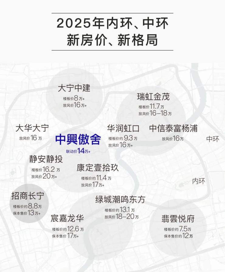 此次,楼王重磅加推60席,约330-350平,均价14万/㎡,价格在如今新的房价梯队中颇具竞争力,徐汇滨江潮鸣东方19.5万,黄浦区壹号院18.5万,如此看来,联动价的万科中兴傲舍俨然成了性价比豪宅。