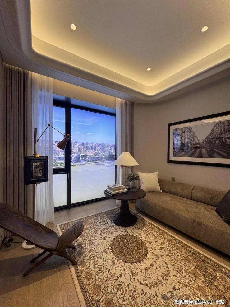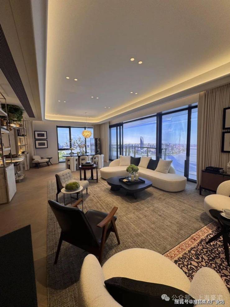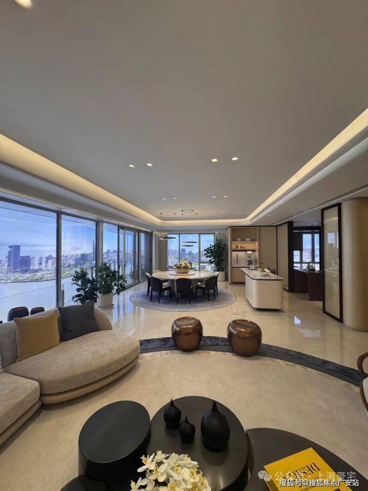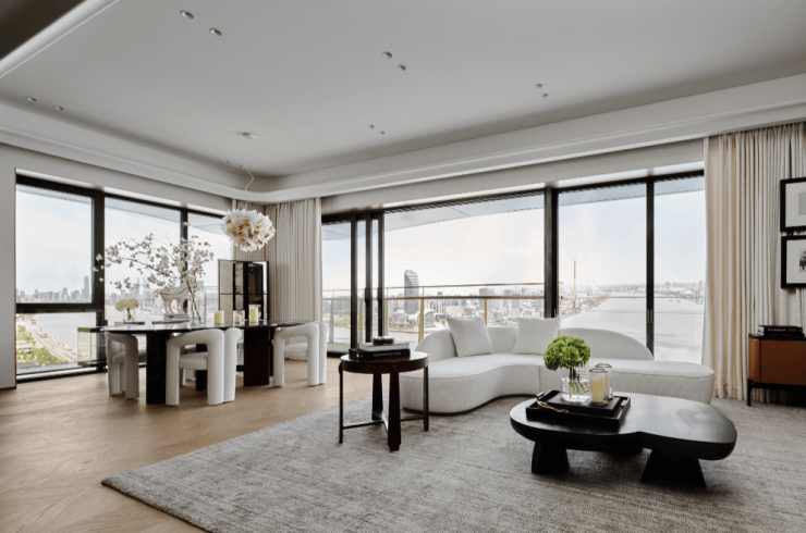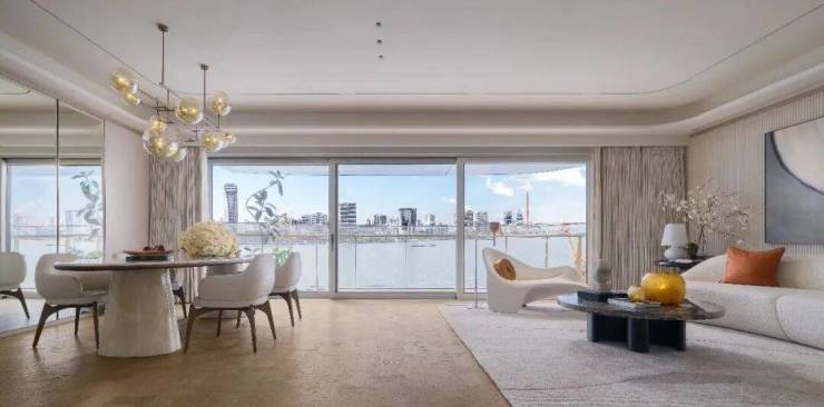 约180㎡产品,四开间全朝南的经典布局,取景框设计将陆家嘴天际线引入室内。