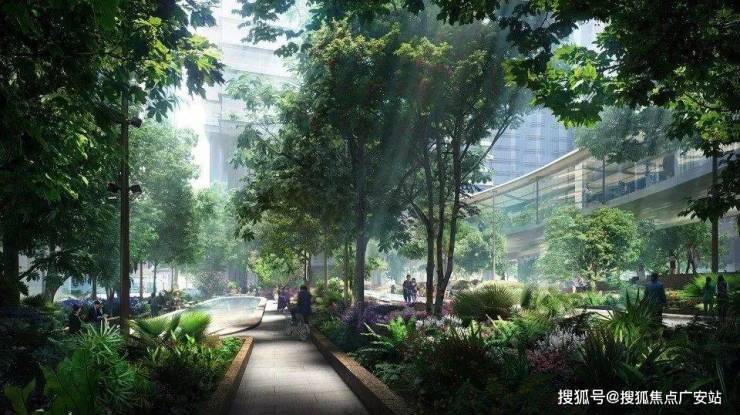 最大的公共通廊串联了昌邑路和滨江步道,它既是一条宽阔的视觉通廊,同时也是项目的核心景观通廊契合建筑造型设计,打造三维立体的景观以及下沉空间。