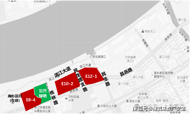 地块南面是万科翡翠滨江、西侧陆家嘴壹号院、恒大滨江华府,东侧民生路渡口,大致位置如下图: