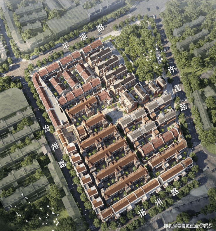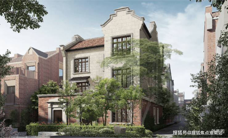 28幢3层联排及合院别墅,融合石库门山墙、跨弄拱圈、镂空砖墙、挑阳台等经典元素