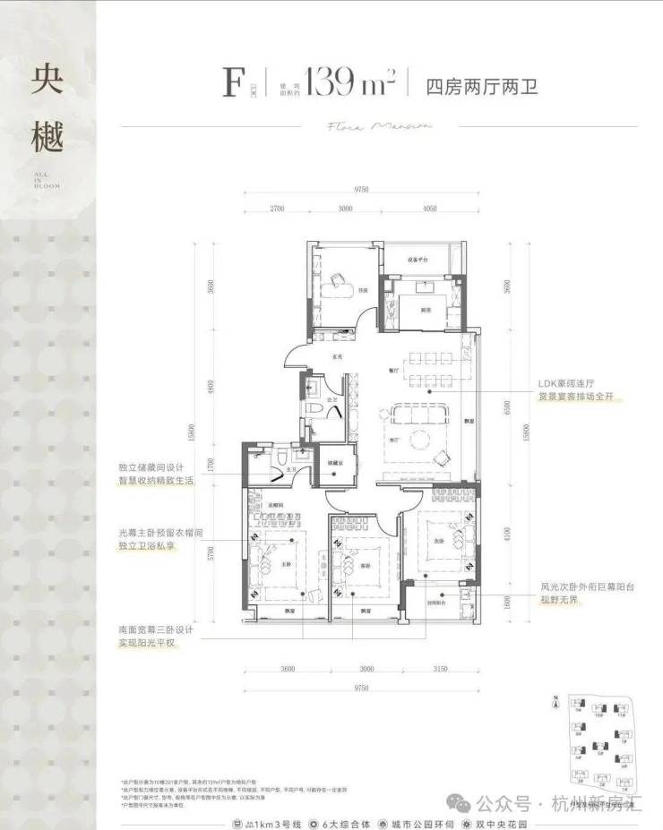 建面约139㎡的四房两厅两卫户型,则以它的南向三卧室:双飘窗+封闭阳台设计脱颖而出。整体南北通透设计,加上主卧衣帽间的贴心设置,为家庭生活提供了更多的空间选择和功能性需求。
