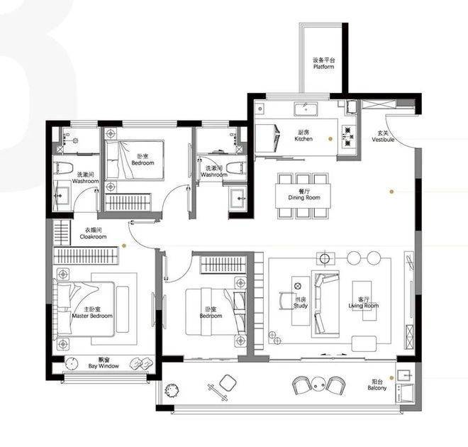 建筑面积约110平 3房2卫