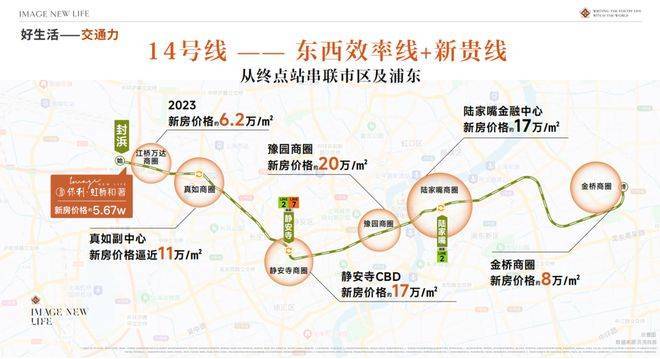 14号线和嘉闵线(在建中)双轨交汇,3站虹桥枢纽,5站普陀,一脉静安。距14号线地铁口仅约200米,步行2分钟即达。作为始发站,通勤有位,30分钟直达静安寺,45分钟抵达陆家嘴。同时相较沿线动辄10万+的房价,本项目“5”字头单价,堪称“外环外的预算,中环级的享受”。