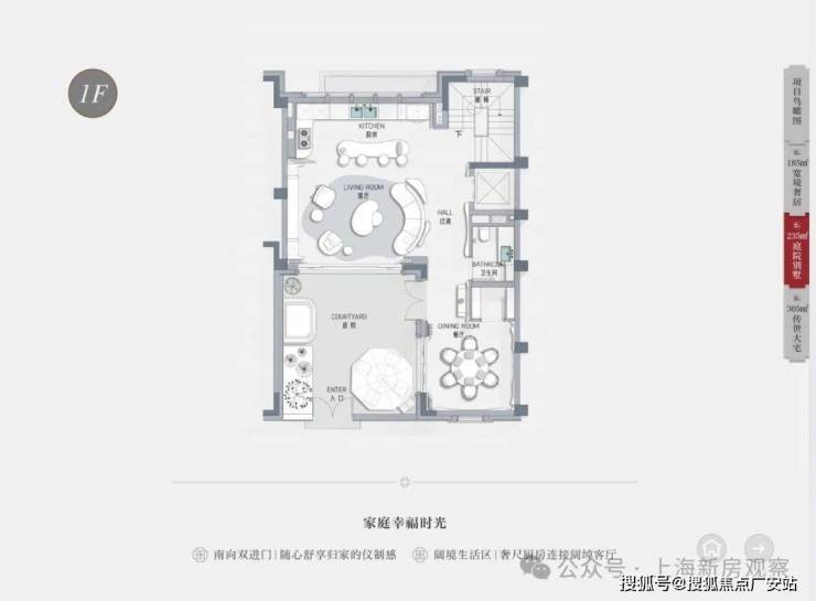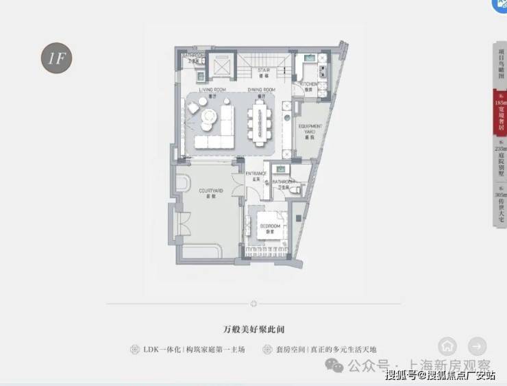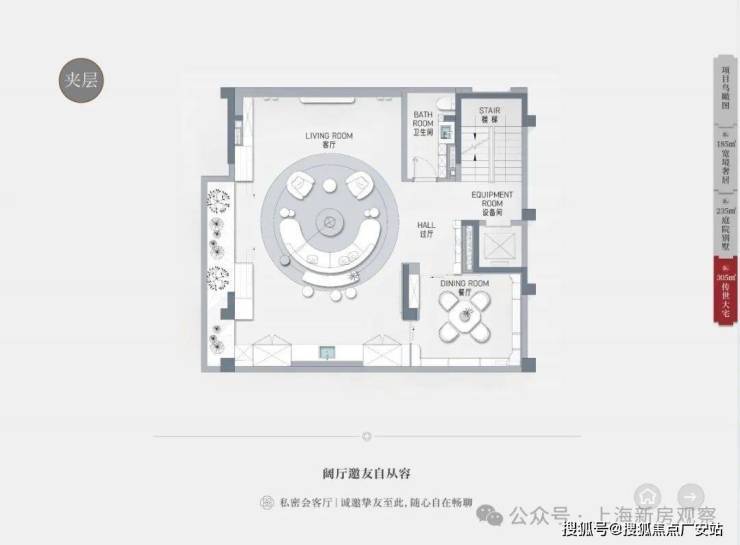 户型及价格:户型面积为建面约185-305㎡,其中联排约185-305㎡,总价约3550-6450万;叠加约181-187㎡,总价约2880-3130万。
