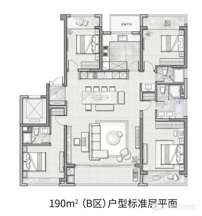 建筑面积约190㎡,4房2厅3卫户型