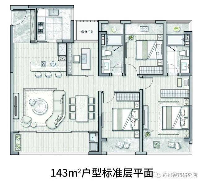 建筑面积约143㎡,4房2厅2卫户型