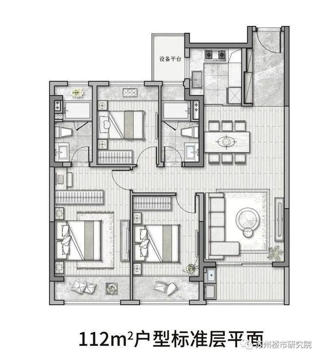 建筑面积约112㎡,3房2厅2卫户型