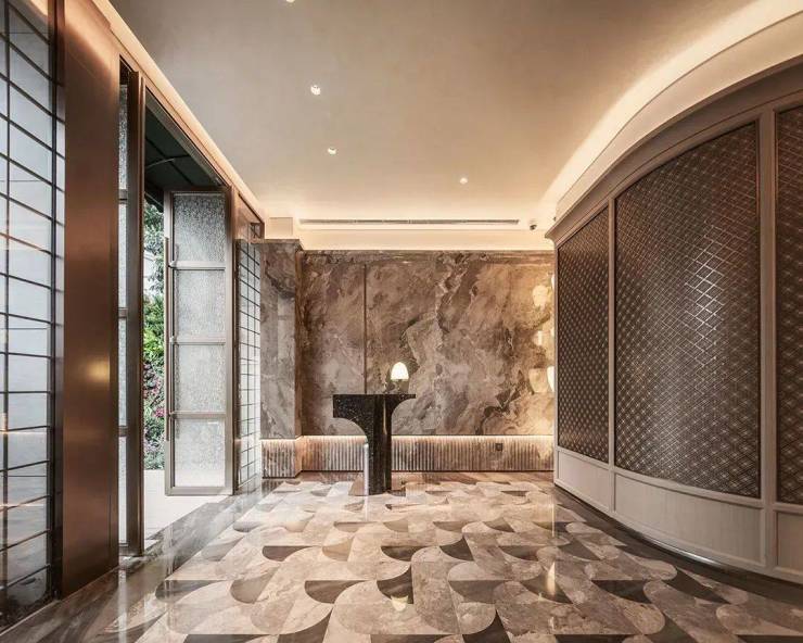 由外而内,用料十足,公区打造光石材就用了十几种,室内空间配置更是拉满。