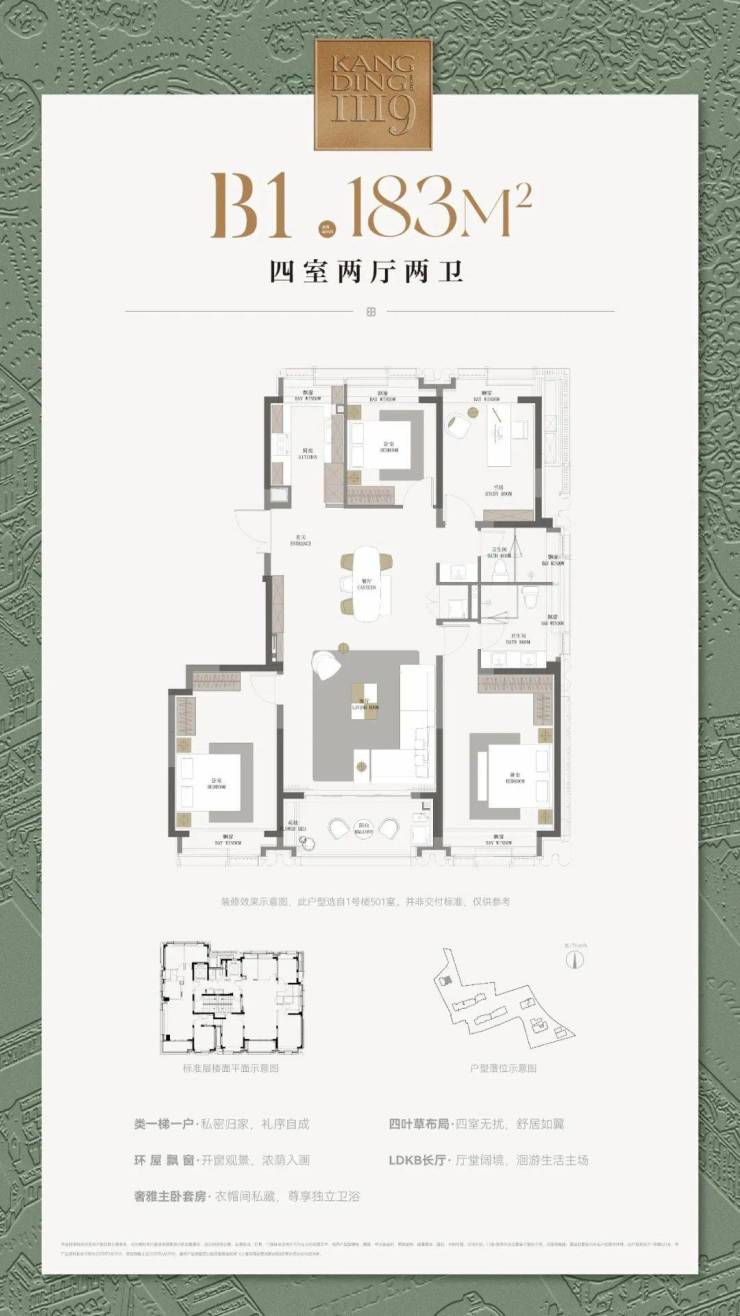 ▶建筑面积约177㎡四房户型,6重采光面,室室皆阳,是给与预算更高客户的又一全新选择。