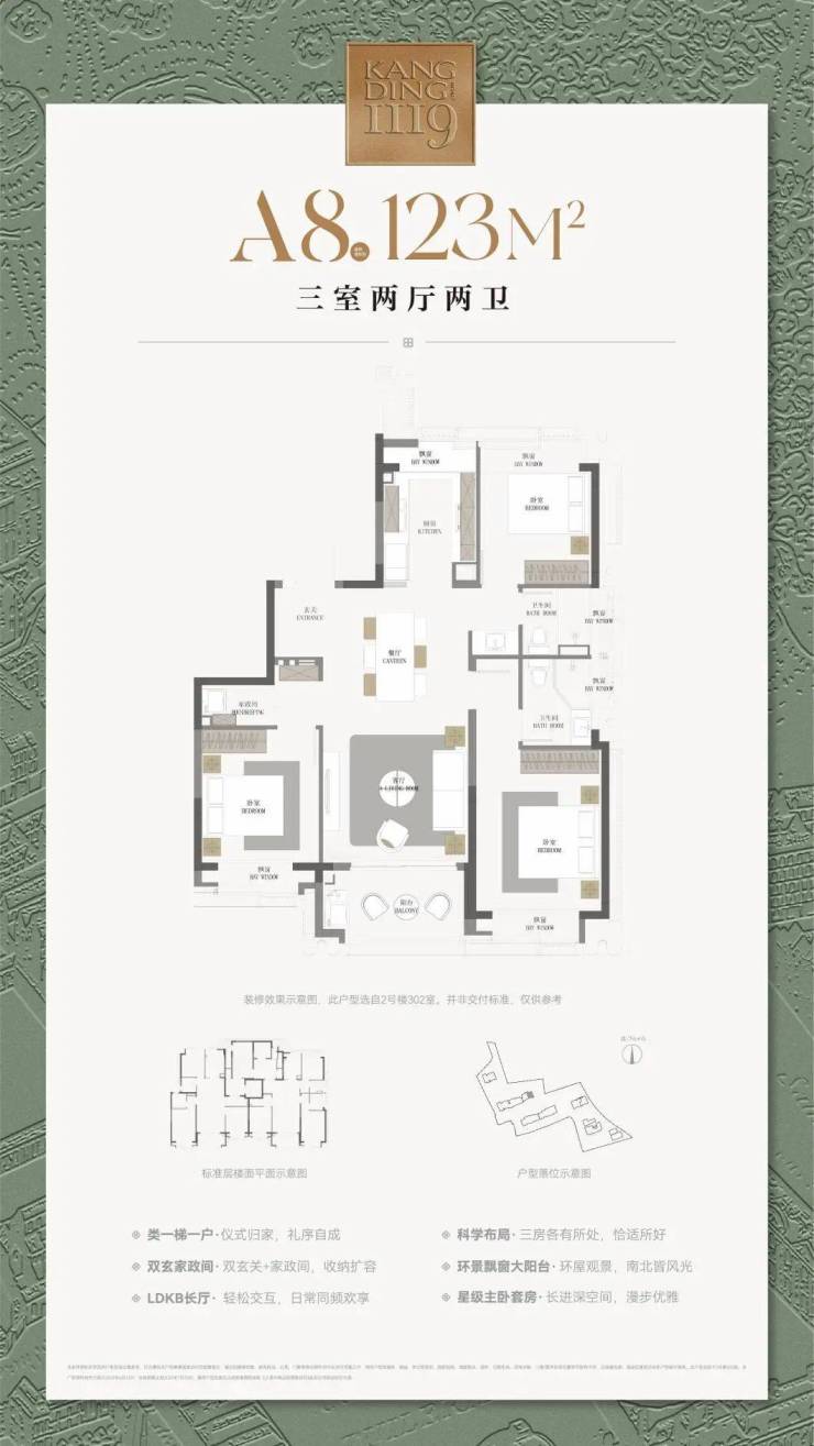▶建筑面积约120㎡三房户型,适配南北动静分区结构;
