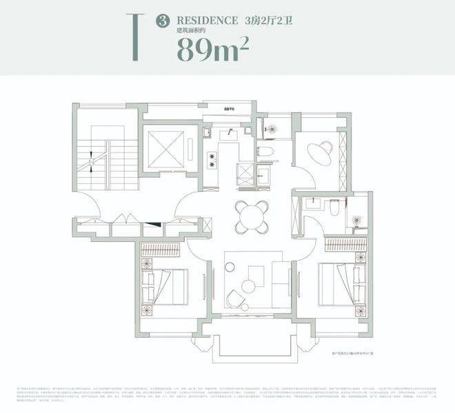 厨房、餐客厅、阳台形成直线通风廊道,南向三开间+宽尺客餐厅,轻松容纳二胎三代家庭的日常;