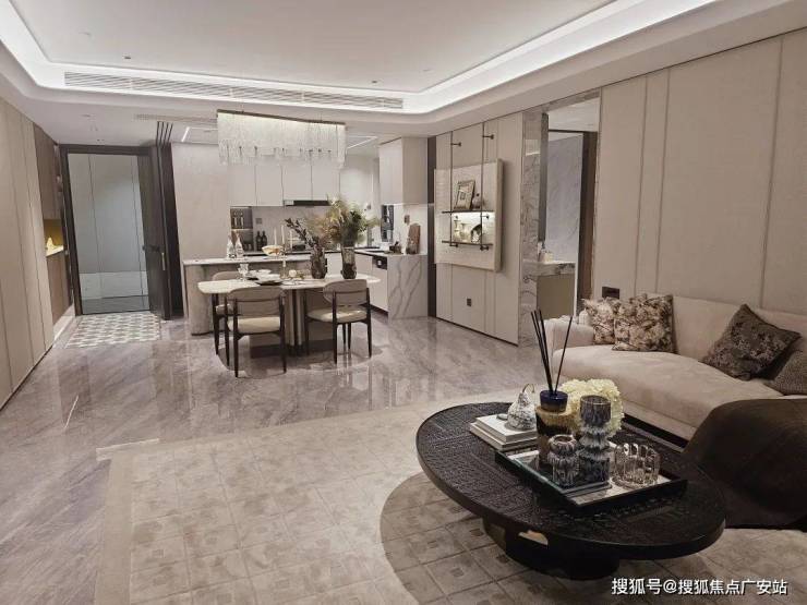 电视背景墙采用卡慕白的石材+皮革造型,弧形吊顶,相当讲究,连空调出风口的形状都打造为海上·清和玺logo山茶花的形状~~三大件为大金(或同等档次)中央空调和地暖,新风系统为百朗(或同等档次),南向阔景阳台,采光视野一级棒!