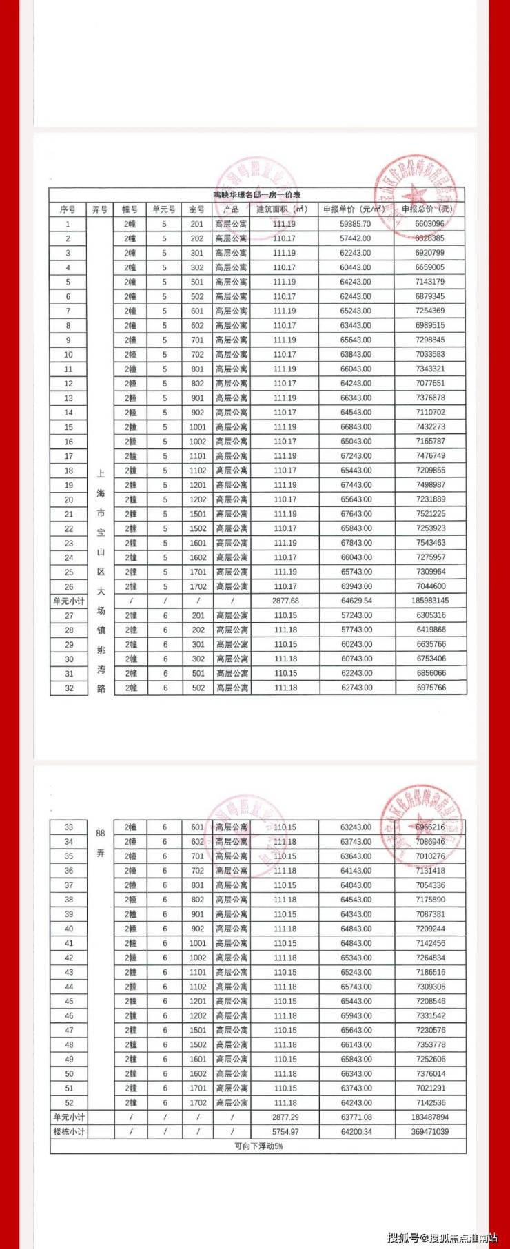 一房一价表如下: