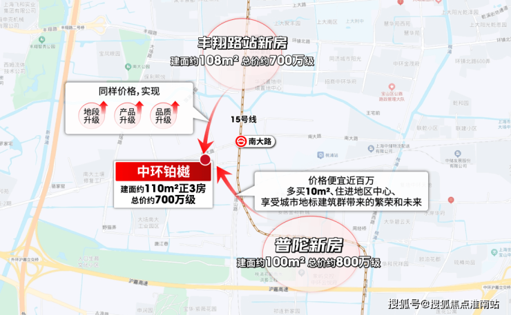 而一旦买到中环铂樾,你将享受到的地段是:距离南大路站直线约300米真地铁房,上车后1站8万+桃浦、5站11万+真如、7站约14万+内环。