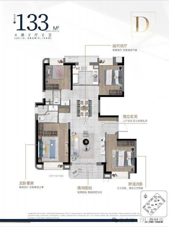 建面;D1户型133㎡ 四室两厅两卫