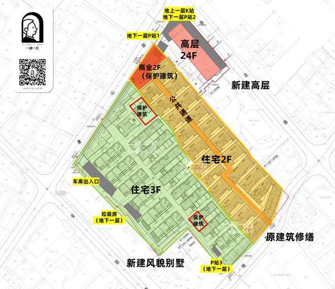 新建别墅区:按照之前的规划里面有两栋保护建筑,垃圾房和P站都在地下一层。
