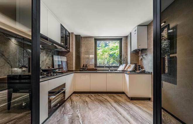 客餐厨顺势衔接、浑然一体,无一丝多余设计,美好生活的理想画卷徐徐展开。窗外高楼林立映江景,涛声阵阵入庭来,在这天然背景中,我们化身生活的主宰,肆意挥洒灵动笔触,为日常添彩。