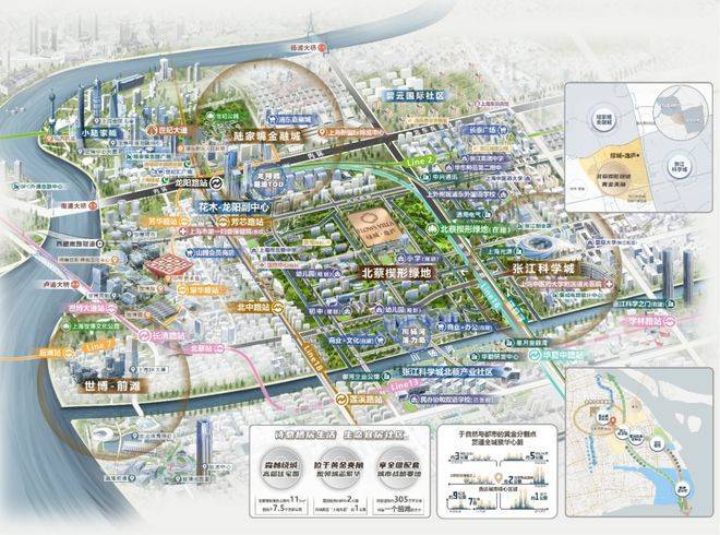地段优势:位于浦东几何中心,毗邻张江科学城与花木-龙阳路城市副中心,北靠北蔡楔形绿地(规划绿化率70%以上)。