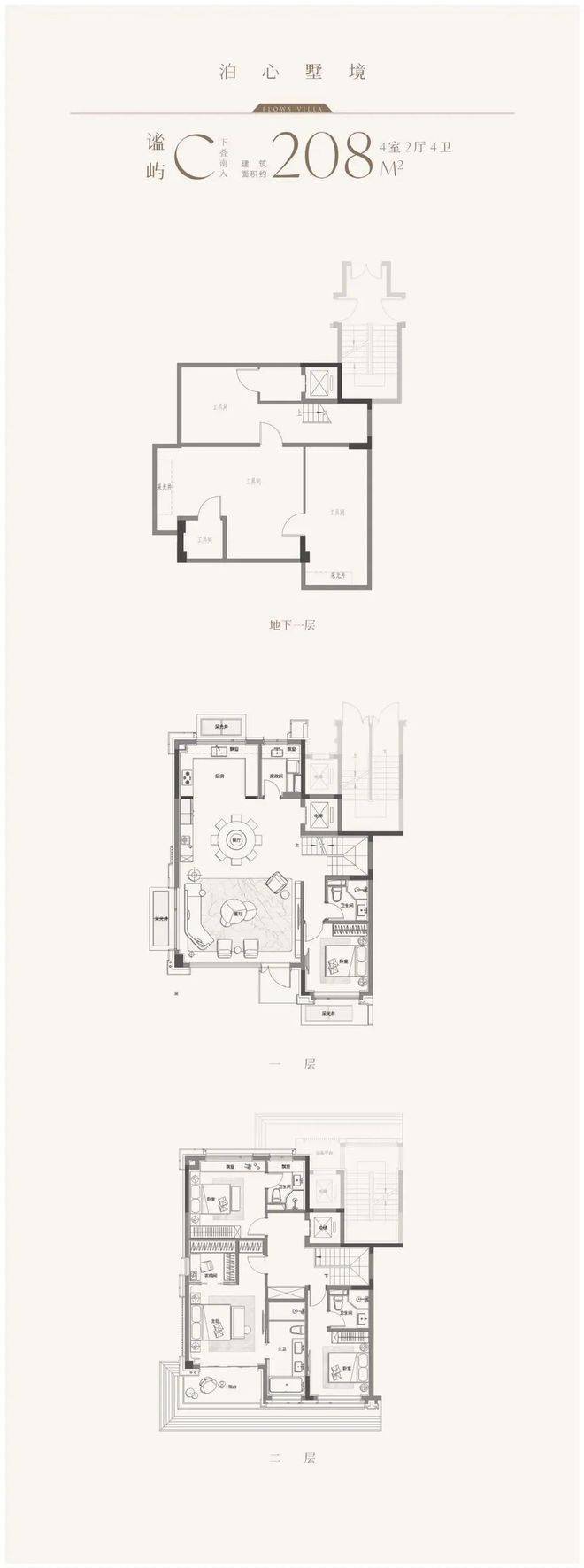 叠墅:上下叠205-216㎡,中叠220㎡,分层设计实现动静分离,部分户型含地面花园