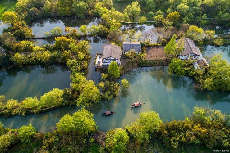 “一曲溪流一曲烟”,乘摇橹船穿行于纵横交错的河道,白鹭掠过芦苇荡,柿子树倒映碧波中。秋日“火柿映波”、冬日“秋芦飞雪”,湿地如天然水墨画。这里还是《非诚勿扰》取景地,网红“氦气球”可俯瞰湿地全景。