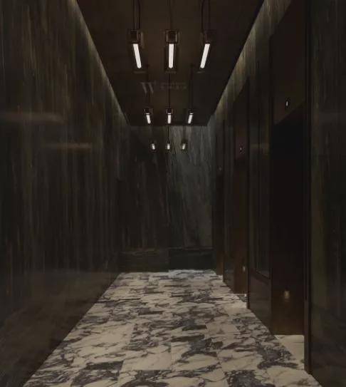 大堂除了给业主带来更强的仪式感外,项目还打造了架空层泛会所空间,并且将室内精装标准延伸至架空层内部,结合约5.1米的层高,打造了能满足业主足不出楼的多元化社交空间。