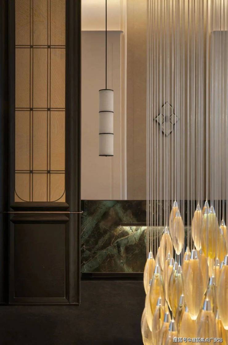 经纬交织,月映千年。绛丝工艺被应用于空间的吊灯之中,设计师力图通过非遗传统,不生硬地创建时间与空间的相对关系, 突破经典设计中对于历史的平铺直叙。