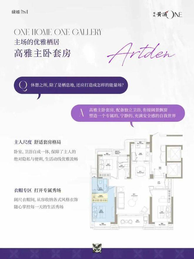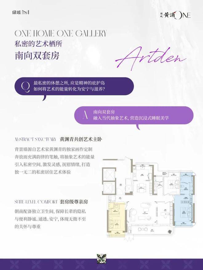 在装标层面,绿城黄浦ONE于绿城体系内的定位更胜潮鸣东方,甄选嘉格纳、劳芬、当代等全球顶奢品牌,以极致考究的材质与工艺,为业主呈献超越期待的奢居体验Unlike the common traditional luxury housing projects available on the market, Greentown Huangpu ONE truly integrates the works, ideas and spirit of artists into the project products!