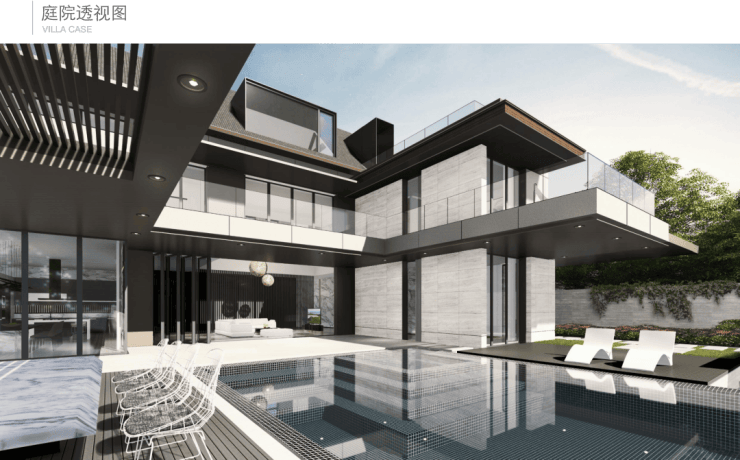 北入户的190+290房型,一层朝南直面庭院和泳池,如果配上整扇的落地玻璃移门......