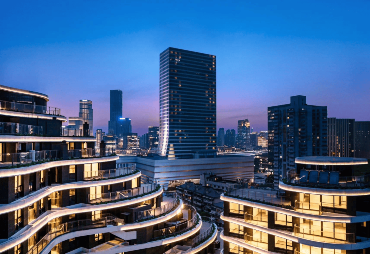 国际知名设计事务所--EID Arch设计,秉承建筑艺术化的理念,大胆采用波浪形状的建筑外形并巧妙融入独特的层层退台式弧形曲线设计,完美将当代时尚元素诠释东方的空间传统与江南人文精神。