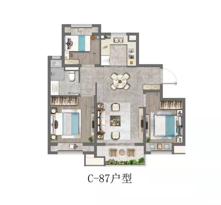 87平米3房2厅1卫️(精装+毛坯)
