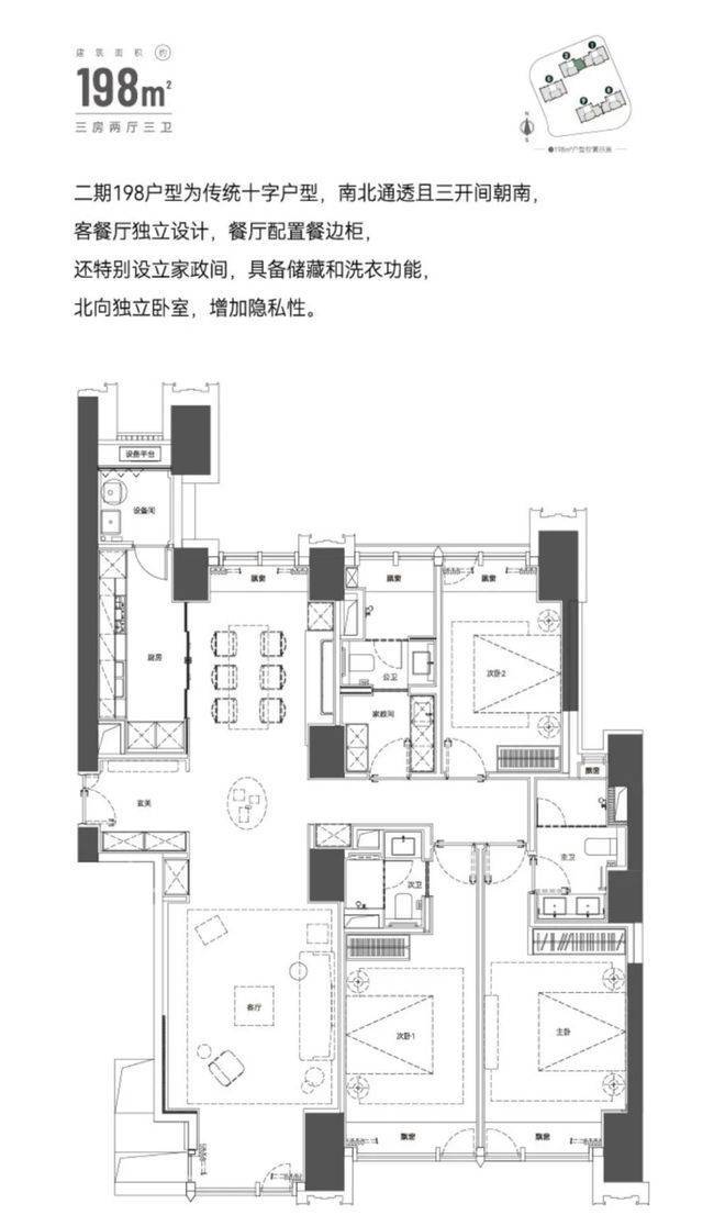 咱们以建面210㎡三房为例: