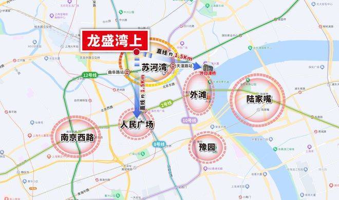 龙盛湾上位于静安区内环内苏河湾板块,天目中路88弄,地处上海“一江一河”(黄浦江、苏州河)战略的核心承载区。项目直线距离人民广场仅约1.5公里,这一地理位置的价值在上海堪称塔尖级别。