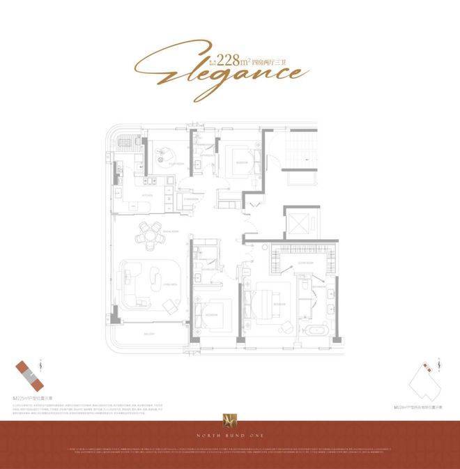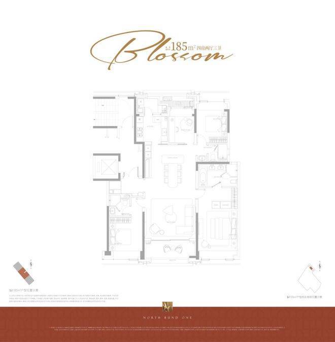 该户型均为边套,拥有更私密的居住体验和客餐厅阳台连续17米的无遮转角景观面,户型尺度更为阔绰,客厅采用转角采光,最大化引入景观;主卧套房尺度奢华。因为建筑立面正面北外滩世界会客厅,东西边套阳台可直观欣赏北外滩的未来城景,东边套部分房源甚至能将陆家嘴“三件套”框入每日窗景;西边套依旧视野通透,南北无遮挡,西向有下午的采光优势,高区房源完全任何遮挡,视野价值巨大。它代表了项目对高端居住体验和稀缺景观价值的顶格兑现。