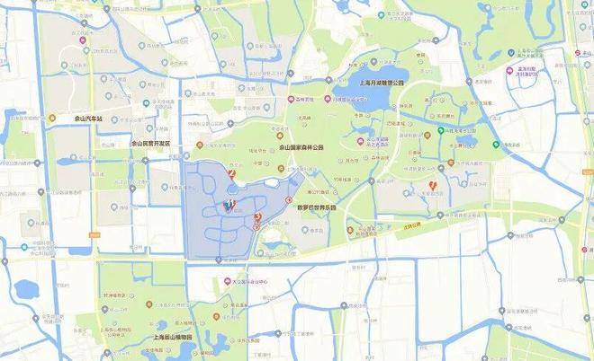 The project is located at the southern foot of Sheshan Mountain, with the Purple Pool water system in front of it. It covers an area of 1,389 acres, with over 300 acres of water bodies winding through it, forming 13 islands and 1 peninsula. The islands are connected by European-style colored steel bridges, and the waterfront villas are all equipped with private docks. The entire community uses all-stone paving, which is almost "unique in Shanghai's villa projects".