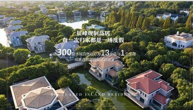 项目位于佘山南脚,北临山前水系紫潭,占地面积1389亩,有300余亩水域蜿蜒其中,形成13个岛和1个半岛,岛与岛之间由欧式彩色钢桥相连,临水别墅均配有私家码头,整个社区采用全石材铺路,在沪上别墅项目中几乎是“独此一家,别无分号”。
