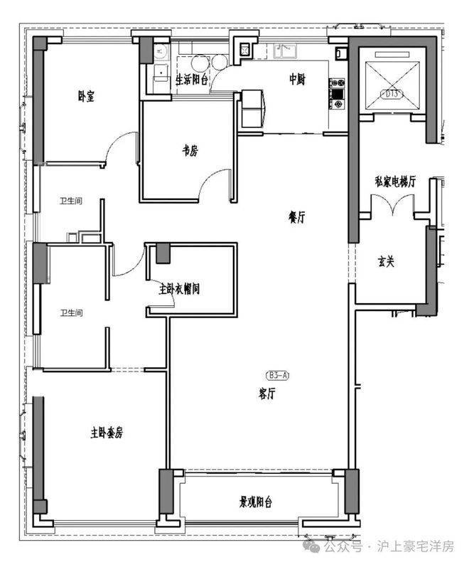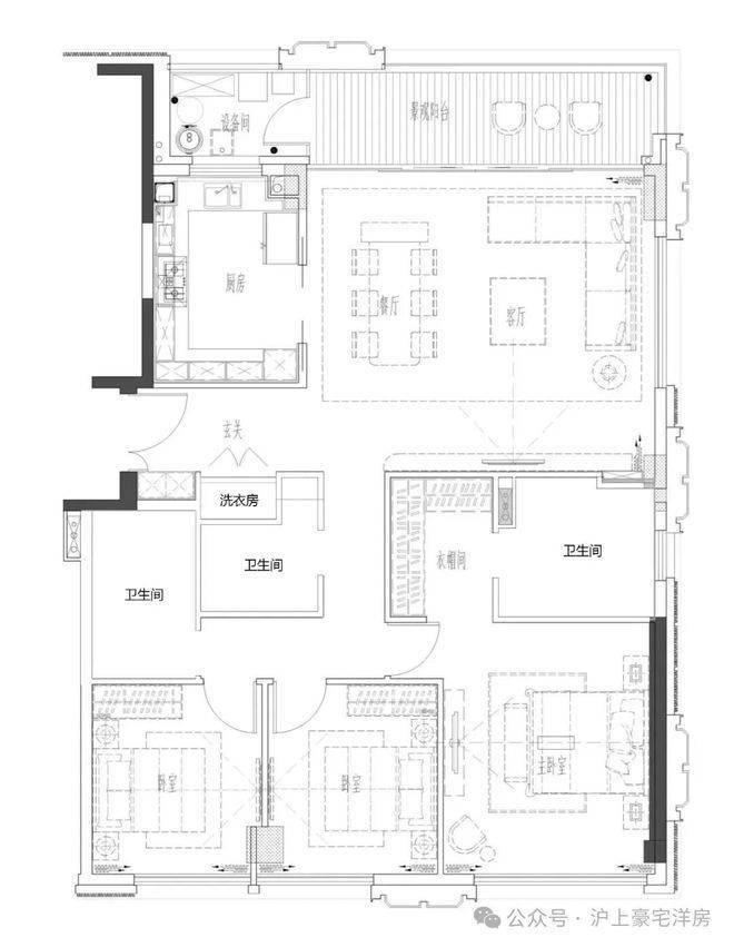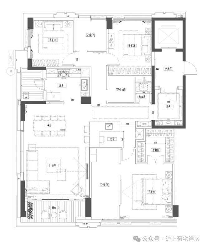 三房两厅三卫,入户玄关,270视野转角边厅,中西双厨,豪华主卧套。